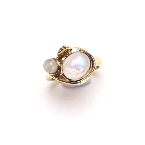 O Anel Langar é um design assimétrico com duas lindas Pedras da Lua. Simples e elegante, pode ser combinados com pulseiras e brincos de Pedra da Lua. Feito em Latão.