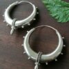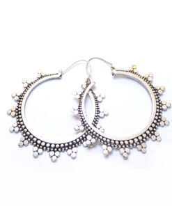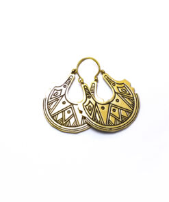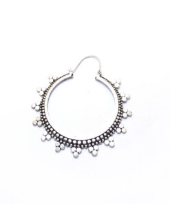 Os brincos Kanti são um clássico de inspiração Celta. Este design representa o poder do Sol. Feitos artesanalmente em latão e banhados a prata, tamanho M.
