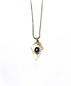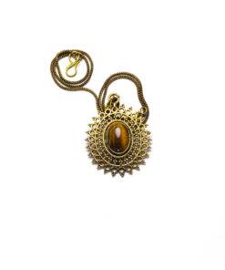 O colar Sunjay é muito design de inspiração celta. Representa o sol e a lua, o dia e a noite. Pontiagudo e com um lindo cristal ao centro, este lindo pendente é irreverente e delicado. Feito artesanalmente em latão.