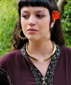 O colar Sunjay é muito design de inspiração celta. Representa o sol e a lua, o dia e a noite. Pontiagudo e com um lindo cristal ao centro, este lindo pendente é irreverente e delicado. Feito artesanalmente em latão.