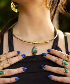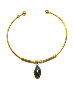 O colar Sunjay é muito design de inspiração celta. Representa o sol e a lua, o dia e a noite. Pontiagudo e com um lindo cristal ao centro, este lindo pendente é irreverente e delicado. Feito artesanalmente em latão.